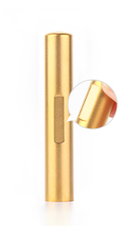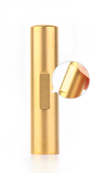 チタンに印鑑の上側を示す「目印アタリ」が付く金属系印材です。高級感のあふれる、ゴールドチタン製印鑑。ツヤ消し加工により、目立ちすぎず、上品な色合い、落ち着いた雰囲気を醸し出す。純チタン製、お肌にやさしい素材なので、金属アレルギーの心配がなく、安心してお使い頂けます。